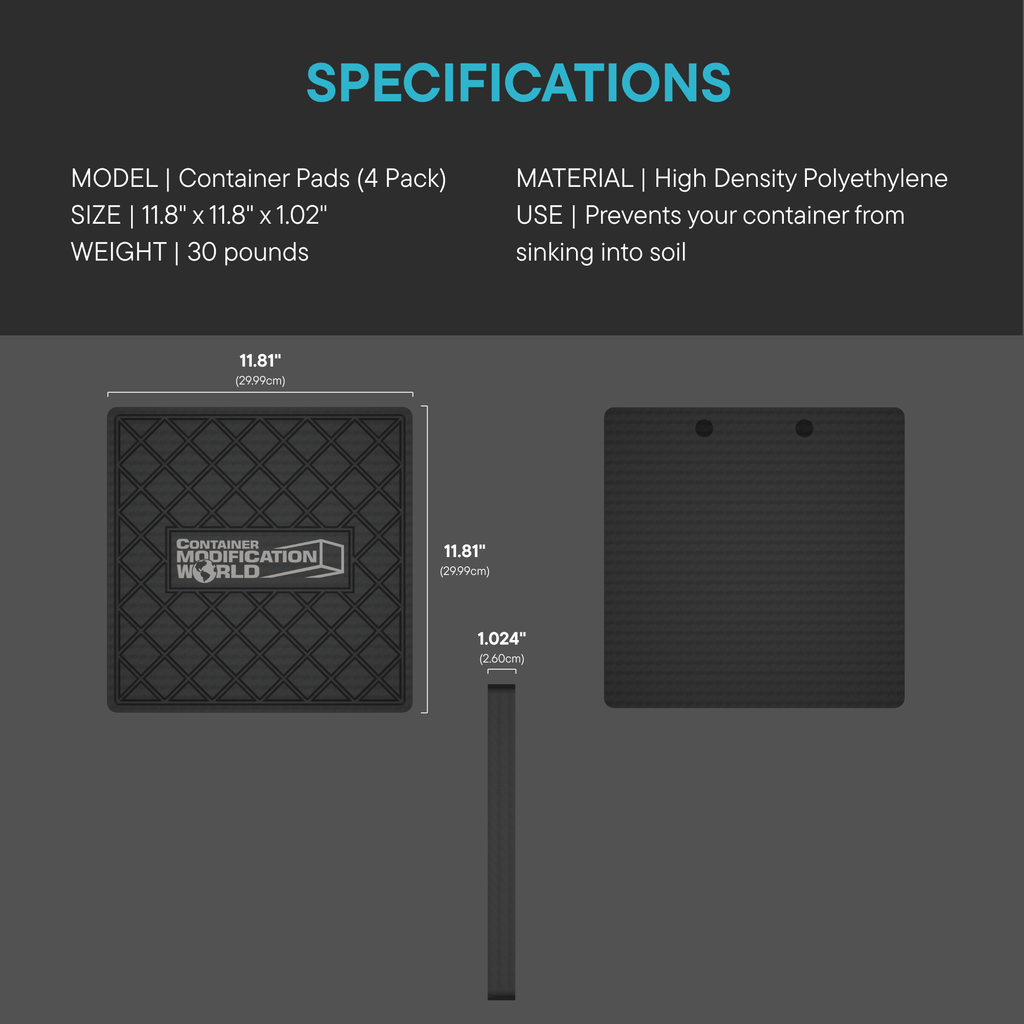 - Will raise your container up an inch and a half from the ground to the underside of your container