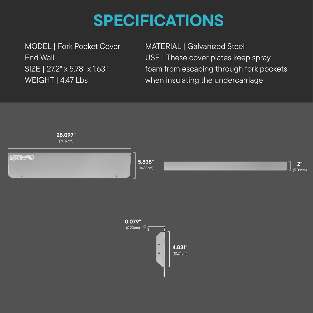 A major problem many shipping container owners experience when applying spray foam to the undercarriage of a shipping container is the fork pocket holes, which allows the spray foam to escape. Our Solution: FORK POCKET COVERS